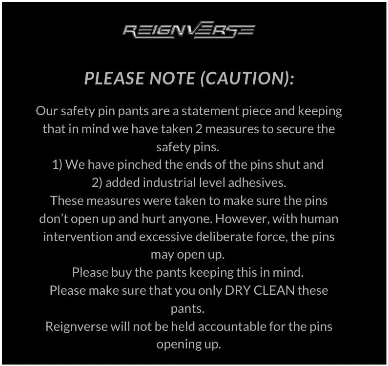 Handle with care as safety pins are used. Although crafted with precision, the ends of the pins are closed using industrial adhesives to merge them together; also pinched completely shut. Please wear with care.